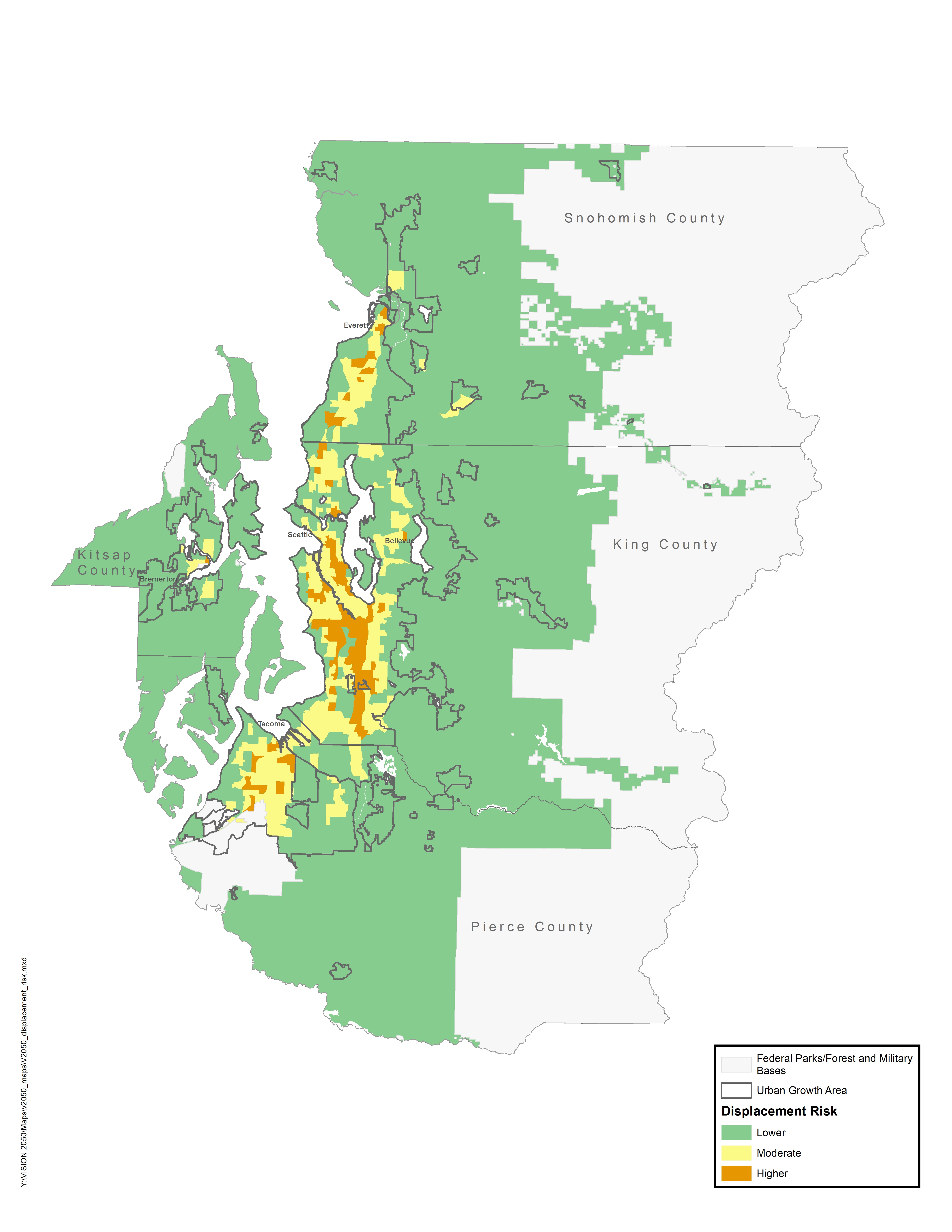 PSRC developed a Displacement Risk Index tool in 2018. The tool was used in the VISION 2050 plan.
