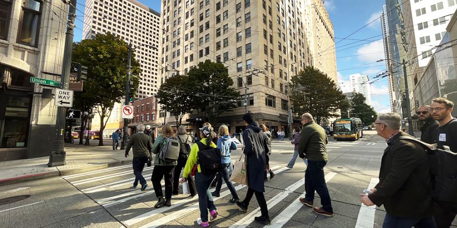 On September 29, PSRC was joined by 150 participants for its 2023 Transit-Oriented Development event. This year’s event focused on the recovery of downtowns and communities from the height of the COVID-19 pandemic and the effort to reimagine and revitalize downtowns and other transit-oriented places. The event consisted of a hybrid remote/in-person morning session of speakers and an afternoon set of walking tours around downtown Seattle.