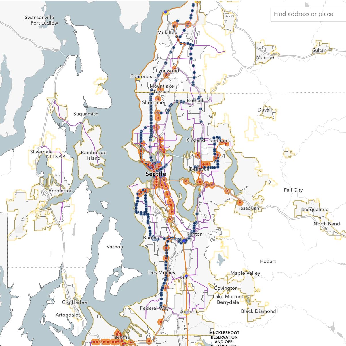 PSRC created an interactive map detailing development areas adjacent to transit created by Senate Bill 6024 (Senator Trudeau - not moving forward) and House Bill 2160 (Representative Reed). The current map reflects Second Substitute House Bill 2160 as passed out of the House Capital Budget Committee. We plan to update the map if new versions of the bill are adopted. View the Map.